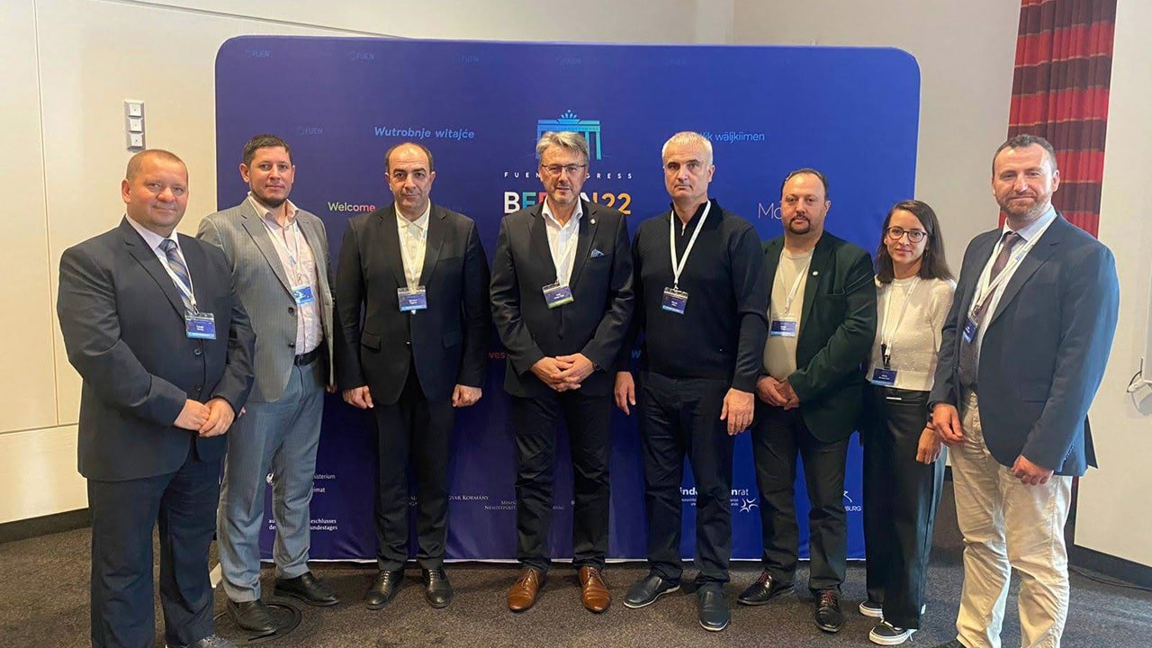A representative of the Turkish community of Kosovo, which is a member of the Federal Union of European Nations (FUEN), between 29th September and 2nd October 2022, was a participant in the 66th Congress of FUEN. President of the Kosovo Youth Union Association Cengiz Kovaç and members of FUEN TAG (Working Group of Turkish Minorities) were participants in the congress held in Berlin organized by the four national minorities and autochthonous ethnic groups in Germany. The opening day sessions held at the Brandenburg State Representation in Berlin focused on the situation of minority communities in international, regional and national conflicts. With the participation of European Parliament deputies, national politicians, representatives of non-governmental organizations and minorities in Ukraine, the main topic of the agenda in the sessions was the Russia-Ukraine war, where was discussed about the situation of national minorities in the war.